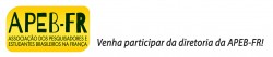 Abertura do período de formação de chapa A APEB-Fr informa seus associados que, após Assembleia geral realizada no dia 15 de setembro de 2016, foi aberto o período para formação de chapa para candidatura à próxima gestão, que irá de setembro de 2016 a fevereio de 2017. Quem desejar formar uma outra chapa ou integrar a que foi formada, escreva para o e-mail divulgacao@apebfr.org até o dia 27 de setembro de 2016. //Chapa prévia formada para a gestão 2016/2017 Presidência: Caio Padovan Vice-presidência: Marina Duarte Diretoria Institucional: Cécile Bourgade e Welliton Maciel Diretoria Científica: Solange Kurpiel e Elis Aquino Diretoria Cultural: Camila César e Marina Romagnoli Diretoria de Comunicação: Lorreine Petters Diretoria Financeira: Manuelle Lago Marques *Representante no Brasil: Antônio Gasparetto – Leia Mais / En savoir plus –