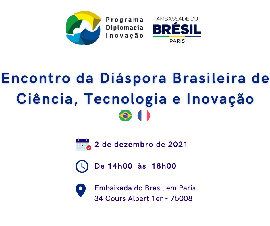 A Embaixada do Brasil em Paris tem o prazer de convidar brasileiras e brasileiros que atuam na França como empreendedores e gestores ligados à inovação, desenvolvedores, pesquisadores e pós-graduandos em empresas, universidades e instituições de pesquisa básica e aplicada para participar do