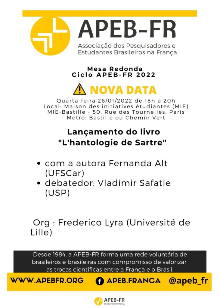 Sortie du livre “L’hantologie de Sartre” en présence de l’auteure Fernanda Alt (UFSCar)
