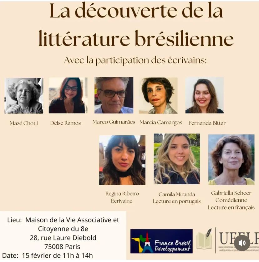 Quem deseja vivenciar de perto a produção literária contemporânea da diáspora brasileira não pode perder este encontro extraordinário, que acontecerá no próximo sábado, dia 15 de fevereiro, das 11h às 14h. Nesse horário, um grupo de seis escritores brasileiros, todos atualmente residentes na França, vai compartilhar com o público suas obras mais recentes, oferecendo uma oportunidade única de conhecer a diversidade de vozes, estilos e temas que compõem o universo literário brasileiro fora do país.